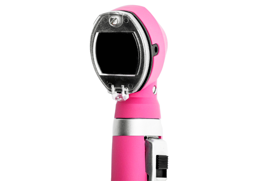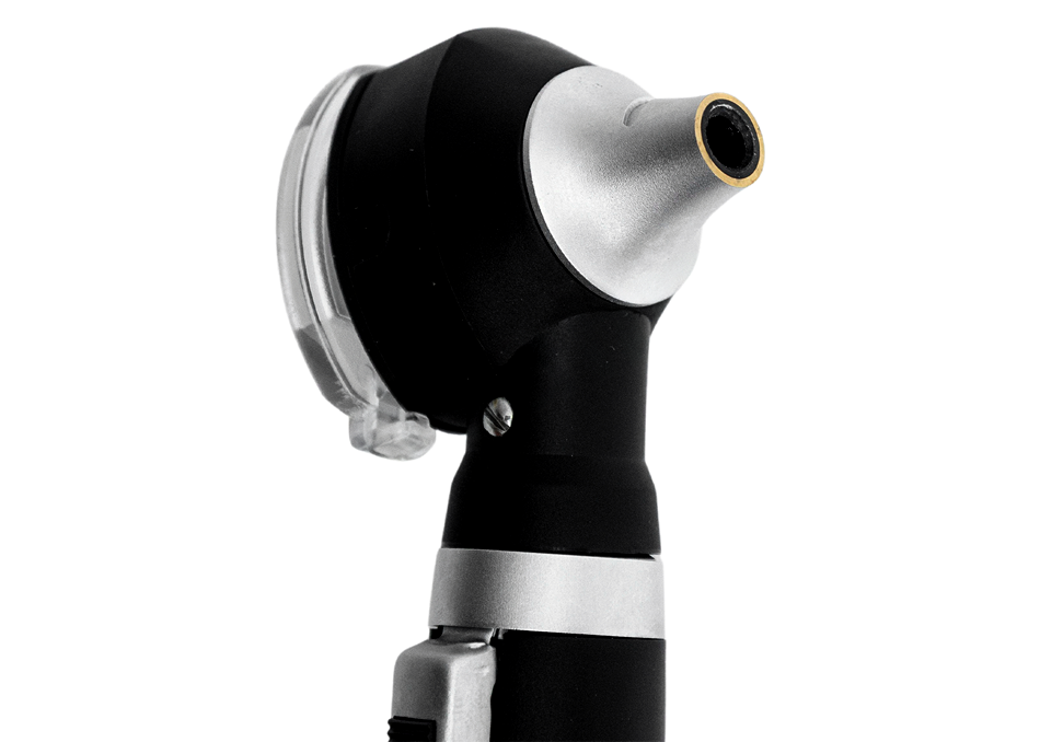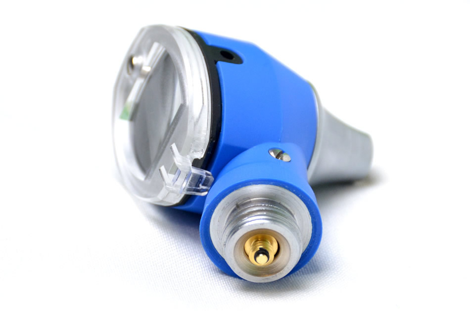 Передача света с помощью оптоволокна (F.O.) обеспечивает равномерное освещение. В отличии от отоскопов с «прямым» освещением лампа находится в основании корпуса головки, не мешает осмотру и манипуляциям.